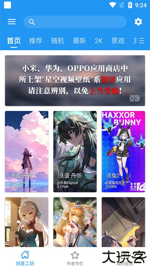 【创意工坊】 海量用户上传作品,一键下载使用,让手机壁纸更精彩。