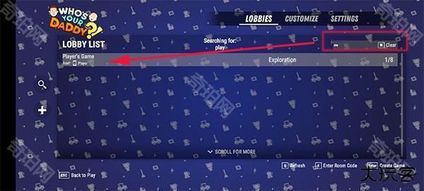 5、想要加入房间的玩家也可以在自定义模式下,搜索房间名称并进入游戏。