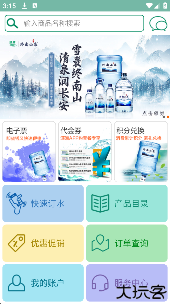 涟漪饮用水APP是西安涟漪饮用水有限公司开发的桶装水订购平台,支持在线订水、积分兑换、代金券使用、配送状态查询及电子发票开具等功能。其采用全封闭无菌生产线,通过ISO9001认证,提供纯净水、矿物质水等产品,日产能达10万桶。用户可设置习惯商品、预约配送时间,并参与促销活动。