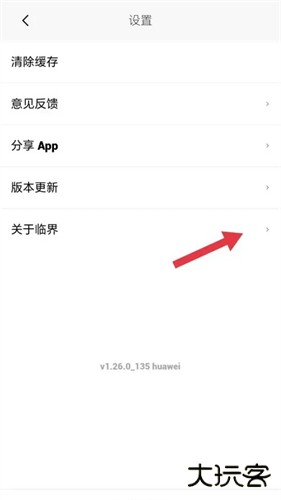 3、在设置页面中,找到【关于临界】选项,点击打开。