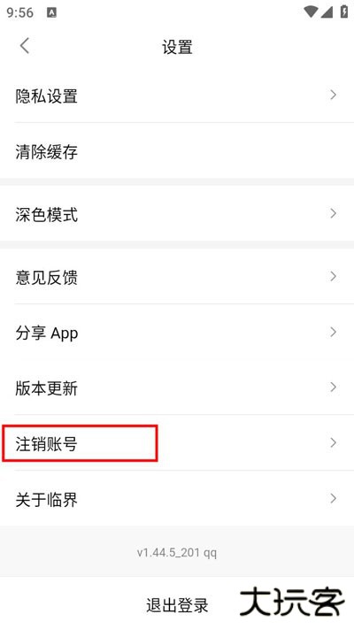 进入设置页面后可以看到注销账号