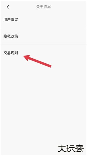 4、在【关于临界】界面,找到【交易规则】选项,点击即可查看详细内容。
