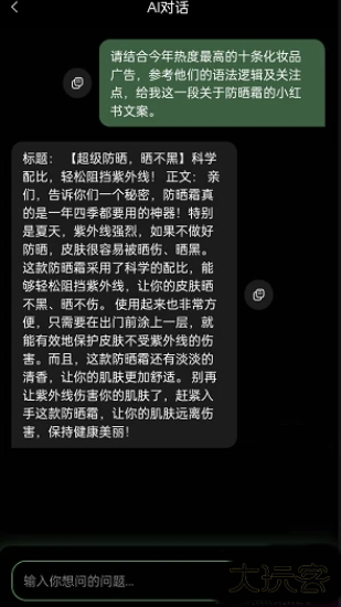 4、也可以让AI为你创作文案,非常方便。
