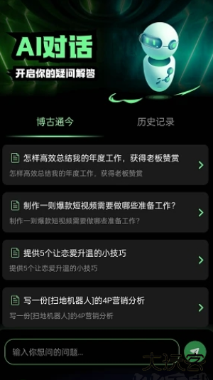 2、智能互动:与机器人实时对话,获得即时反馈和灵感。