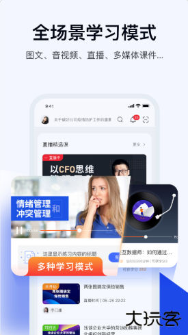 自主学习:员工在“自学课程”频道浏览3000+门行业课程,可缓存离线学习。