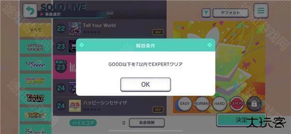 这5个难度模式前4个都是可以直接选择的,一开始第5个噩梦模式是处于锁定状态的。它需要玩家完成指定的任务才能开启,在专家模式内该歌曲的good次数少于7次,只有满足了这个条件,噩梦级别的难度模式才能让玩家参与,不然它会一直处于锁定状态的。