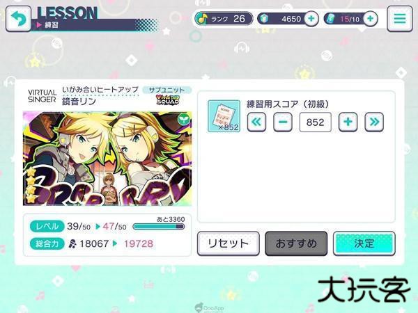 育成分为提升角色等级的「练习」、提升★4及★3角色等级上限的「特训」、提升能力值及获得异色版舞台服(仅限附带服装的角色)的「Master Training(マスタートレーニング)」。
