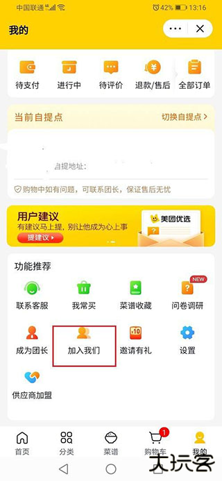 1、打开美团优选app,点击右下角【我的】,然后点击【加入我们】