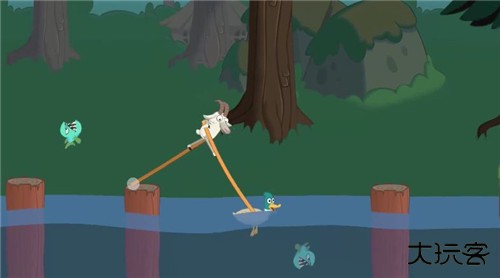 4.不管是树桩或者河里原本悠闲的鸭子,踩到安全的凸起物是基本操作;还得注意树上虎视眈眈的猴子,它可是能一击必杀。