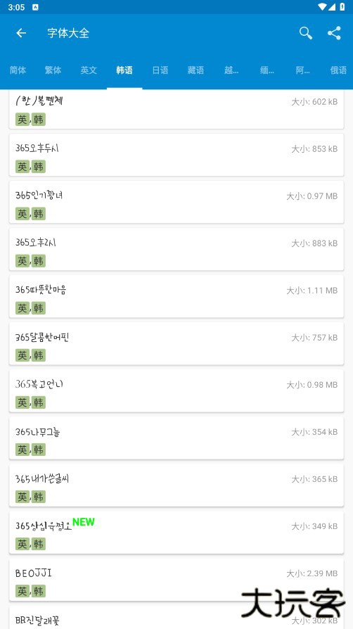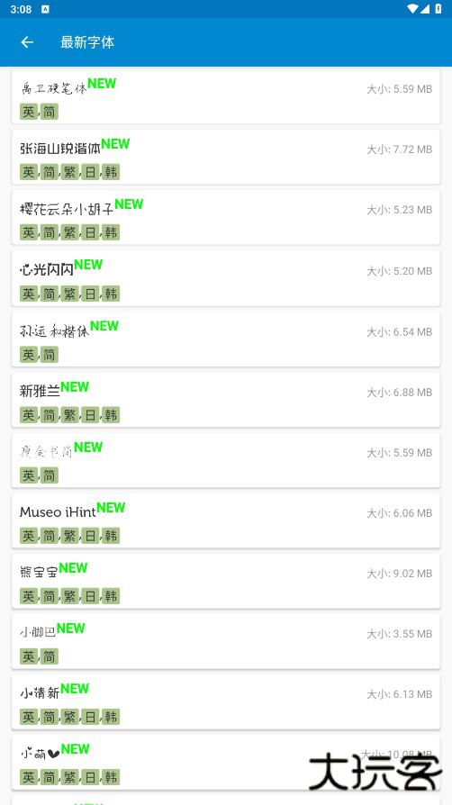 5、当然软件还会不定期上线新的字体,用户可以在最新字体中查看;