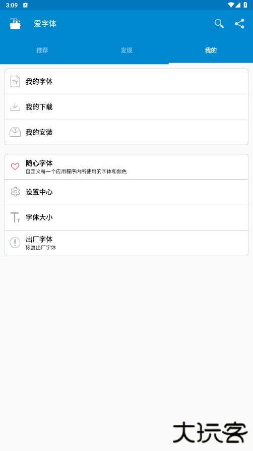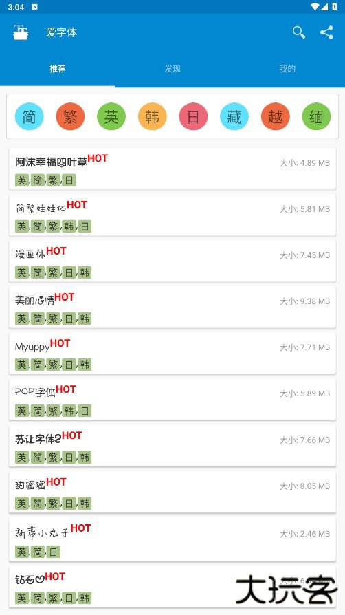 1、下载安装好爱字体,进入软件即可看见各种不同种类字体;