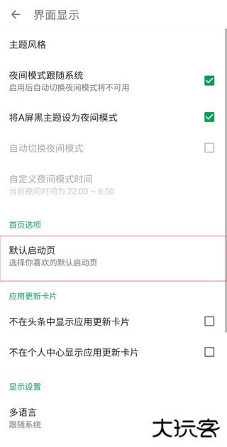 3.然后选择默认启动页的选项