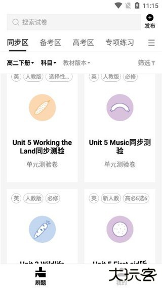 1、进入疯狂刷题学生版app后可以选择,科目和教材版本,都是很全的,而且每个章节都有相应的试卷、题目