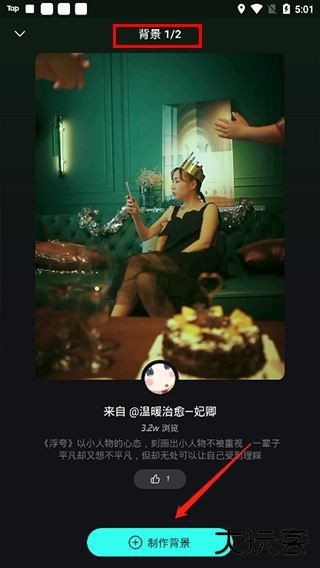 4、应用不仅支持自行制作背景,还能在上分看到目前该音乐供提供了2个视频背景。