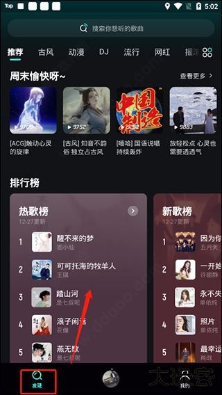 7、点击左侧“发现”按钮可查看到各种排行榜。