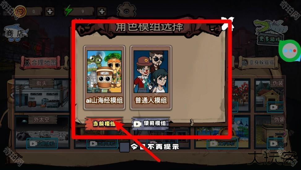 1.在角色模组选择界面,玩家可以自由切换不同模组,体验山海经模组或普通人模组,开启全新的趣味玩法。