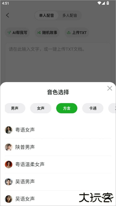3、应用支持粤语、闽南语、卡通角色等多种声音转换,真实发音,流畅自然。