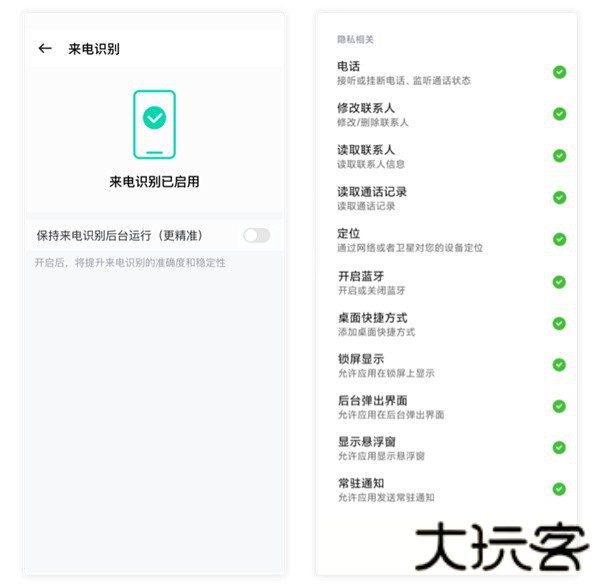 ——开启相关权限后,来电识别可以正常使用。
