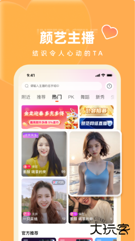 2、主播资源库:聚合大量高颜值才艺主播,覆盖热舞、歌唱、游戏等24小时不间断直播内容。