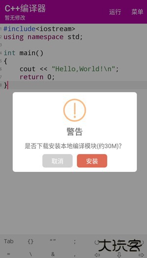 1、在本站下载安装c++编译器,运行软件,打开之后直接在手机上编写代码,写完之后点击运行,可以进行代码的编译组建以及运行;
