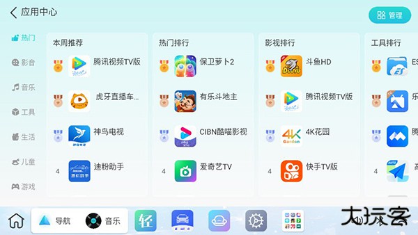 用户点击屏幕下方沙发图标,可以打开应用中心界面,可以下载多种多样的应用。