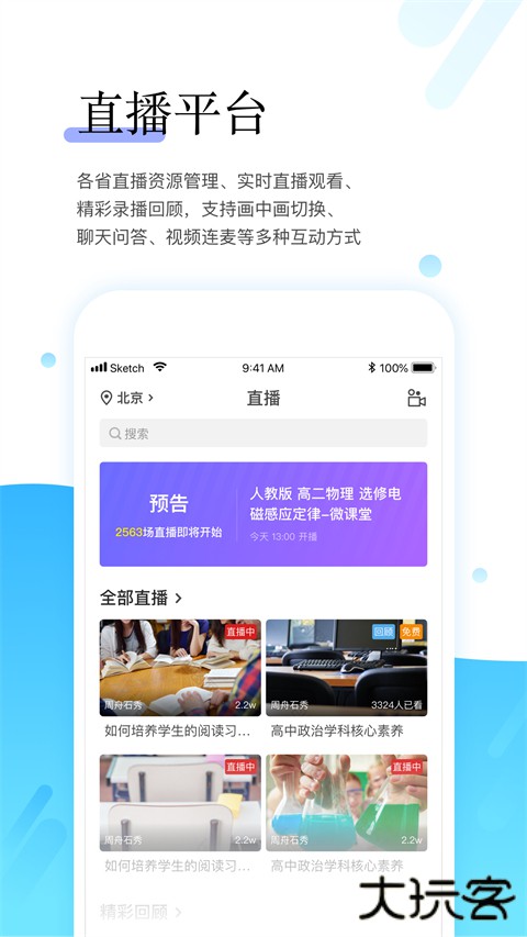 2、直播平台支持跨省特级教师实况转播,含画中画切换、连麦互动功能。