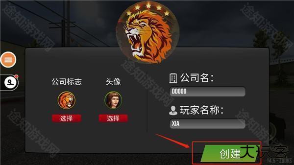 1、下载该游戏,进入游戏之后输入公司名和玩家名称以及公司标志、头像,点击创建。