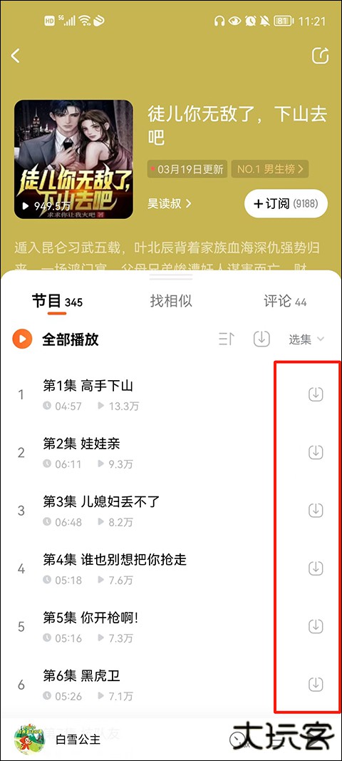 2、支持离线下载功能,提前缓存好想听的内容。