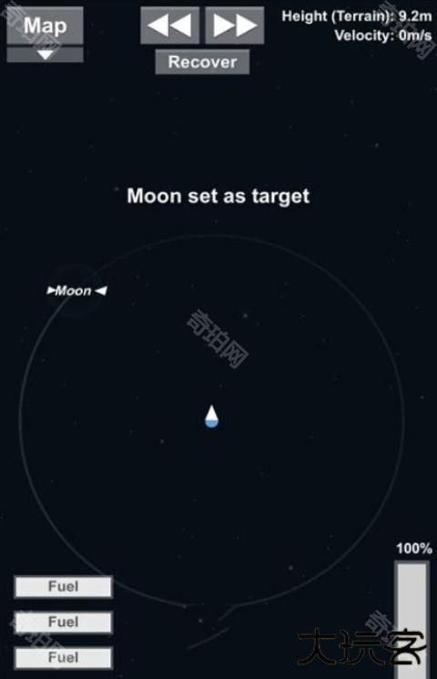 7、在推进时候后在到达月球10KM的时间开启燃料动力,然后要注意下降速度,不用过快否则会坠毁;