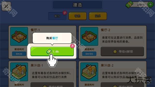 2、拥有足够多的货币后,点击建造即可建造餐饮、客舱以及各种娱乐设施,注意有些建造需要达到相应的等级要求。