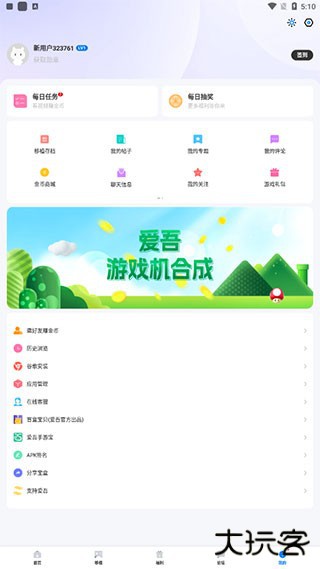 5、点开我的,可以查看每日任务、我的帖子、我的专题、我的评论、金币商城等