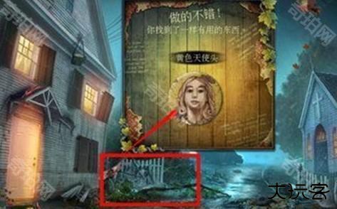往前走,点击栅栏,进入寻物游戏。结束以后得到黄色天使头。