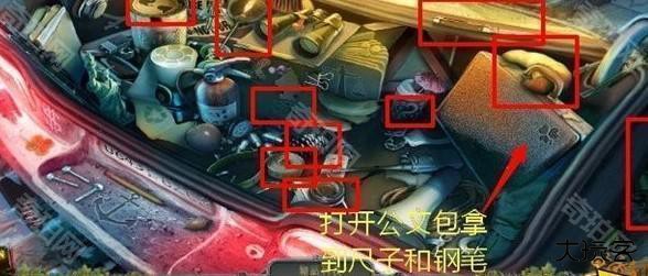 我们利用车钥匙把车子的后备箱打开发现又是有一个寻物游戏,完成后拿到断线钳,拿到后我们向右走,去下街道,再穿过桥。
