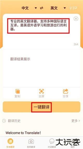 3、点击一键翻译便可转换,同时还支持语言包括中英、英中、中日、日中、中韩、韩中等,为用户轻松实现英语翻译、英文拍照翻译、日语拍照翻译、韩文拍照翻译。