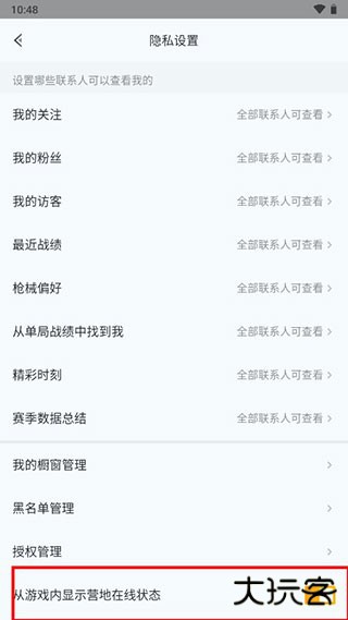 4、把从游戏内显示营地在线状态关闭即可