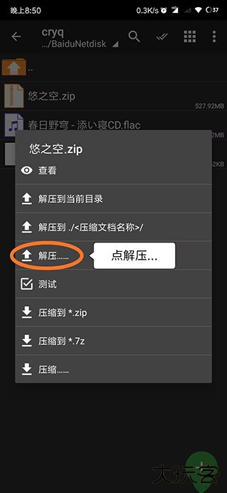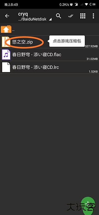 3、下载游戏资源,下载完成后,下载ZA,ZA下载好之后,进入ZA,找到你下载的游戏压缩包,点击压缩包的名字,会出现一个弹窗,点击解压