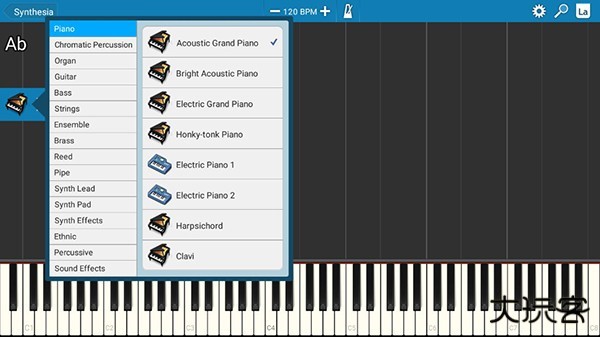 synthesia手机版是非常不错的虚拟钢琴软件,用户可以虚拟键盘进行弹奏钢琴,对于初学钢琴弹奏的用户来说真的是神器,它不但可与大家的电钢琴相连接,同时软件还拥有内置节拍器,上面还为用户准备了超多实用的小功能,可以给不懂五线谱的人知道怎么弹钢琴,支持任何MID文件的导入和弹奏。