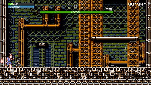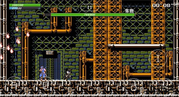 3、发射手里剑,手里剑会朝着玩家以类似z型的轨迹飞行后飞出屏幕,如果boss再次使用手里剑则会消失,每一次转向都会造成一次伤害,第一段需要跳过去,第二段后半部分手里剑会离地一个身位,一直到第三段,所以这段是不需要跳起躲避的。