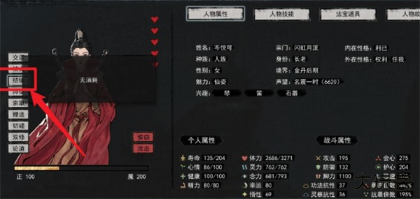 在成功之后就会有子嗣出生,玩家可以通关人物属性的关系途中查到她的子女是谁,玩家也算是大功告成了。其实还是比较有趣的一个系统,其实夫妻一起修炼加的属性还挺多。这个玩法的灵感应该是来自《神雕侠侣》这部作品,古墓派功法《玉女心经》的“玉女素心剑”练到最后一层需要男女双人相互帮助下练功,如今这种设计出现在《鬼谷八荒》中,可以看出武侠和仙侠其实很多地方都是相通的。