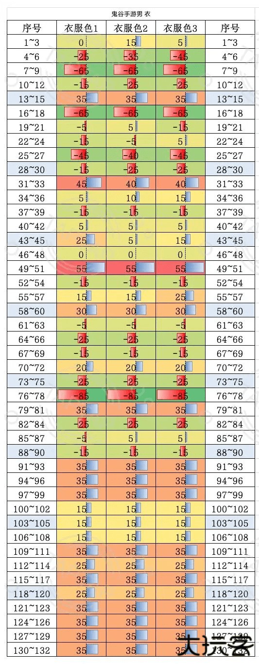所有数据均以1号位为基准,根据基准进行上下浮动。