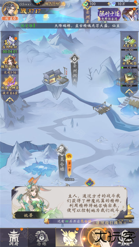 逛个爽的『山海世界地图』:九大州地域特色迥异,打造山海经世界观下的特色大地图。云州大地终年积雪,受神仙影响不仅到处笼罩着云层,在这里能够直接在云彩里穿行;雷州大地气候瞬息万变,雷电之气危险异常,州中藏有上古部落遗址;还有“神秘”的巫文化发源地姜州......