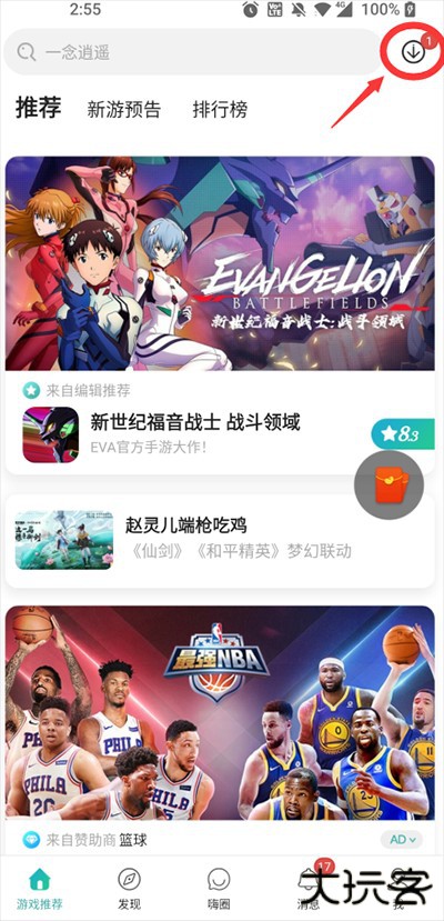 1、打开酷酷跑app,进入游戏推荐界面,这里有许多推荐的游戏,也可以搜索想玩的游戏