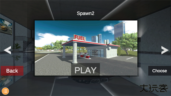 5、完成车辆设置后,点击右侧的 Drive 按钮,挑选地图并按 PLAY 开始游戏。