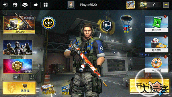 1、打开手机上的《全球射击行动》中文版应用。加载完毕后,点击屏幕中央显著的 “开始游戏” 按钮。