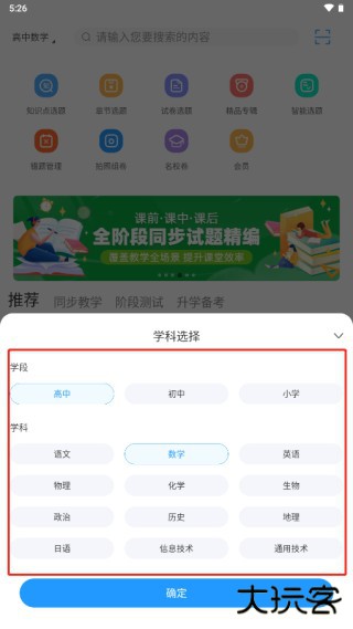 1、用户打开软件,点击左上角图示位置可以更改学科。