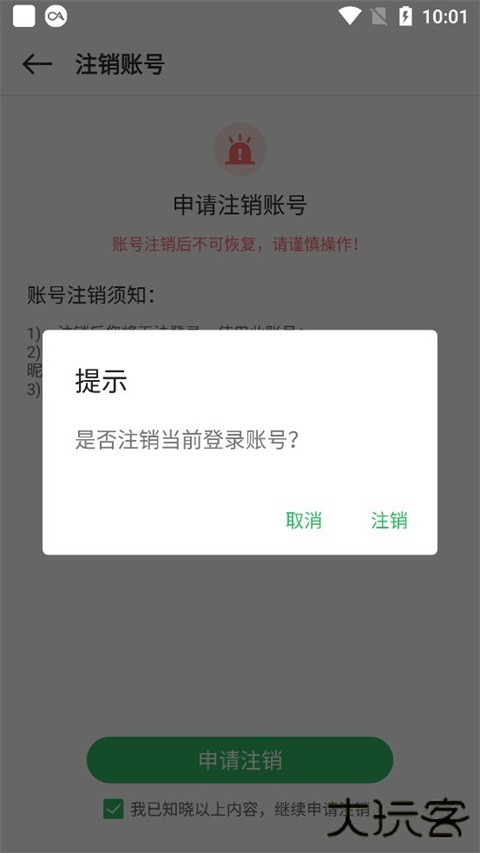 2、点击“注销账号”,注意哦账号注销之后是不能恢复的;