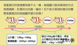 2.而针对出货的问题,系统自动设定为只有大于128kg的小猪才能进行售卖,毕竟小猪养成不易,体积太小卖了不划算,大家可以参考一下这个售卖价格表,体积越大,价格越贵。