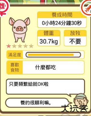 1.首先大家需要的是小猪购置的小猪都是猪仔,大家可以通过点击其身体,可以获得到以下信息: