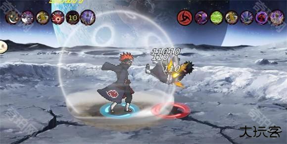 3、二技能神罗天征,短按小神罗攻击,长按中神罗扩大继续攻击,超长按浮空释放大神罗继续攻击。可以在空中使用,在一技能超长按抓取对方时,释放二技能会延长黑棒的抓取时间。释放二技能超长按后点击一技能会释放地爆天星。