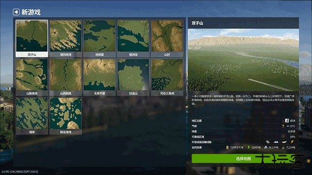 4、进入地图选择环节,浏览并挑选想要建设的地图,确认后点击 “选择地图“;